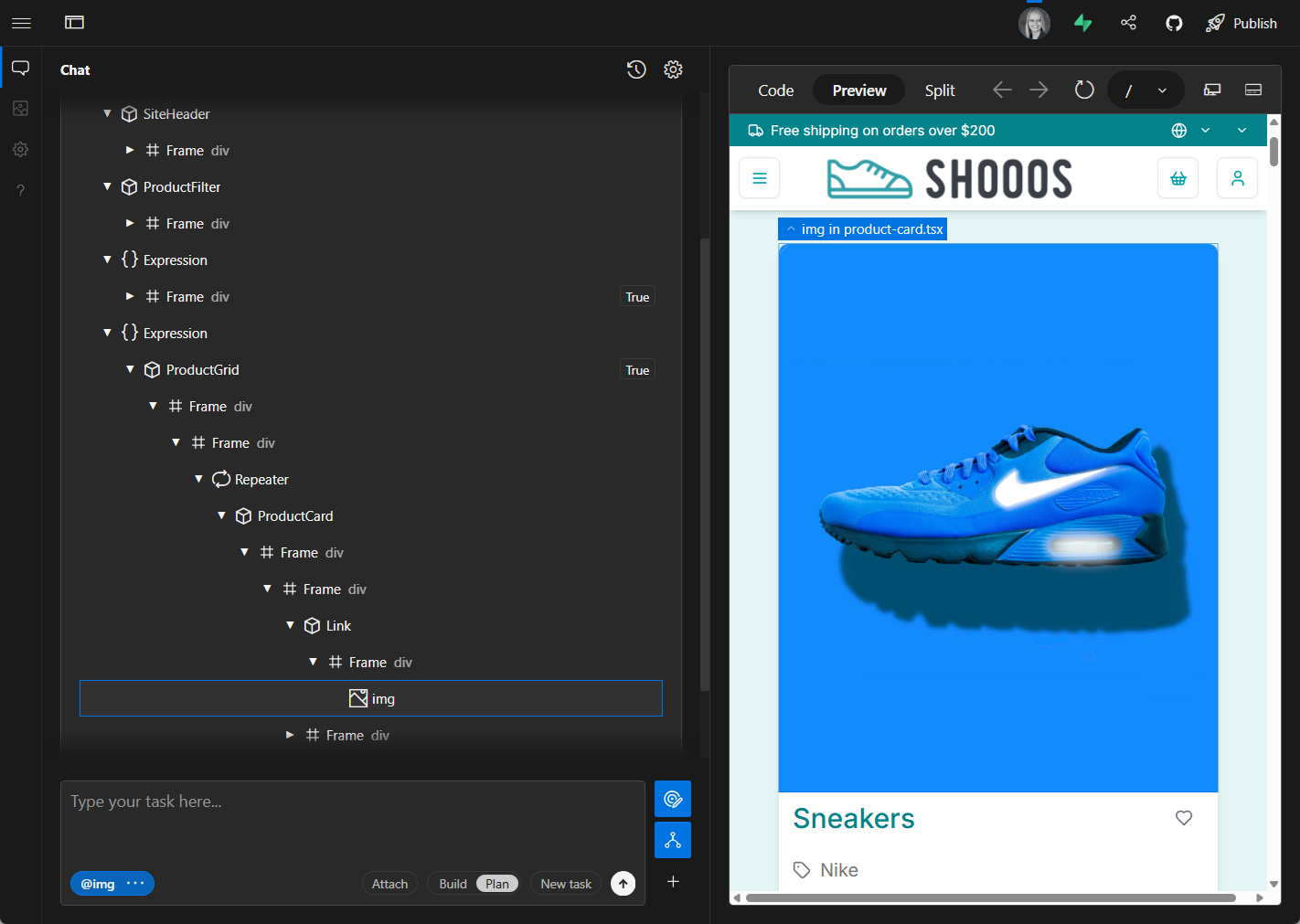 Similarly, the blue label above a selected element can fold out to show you the tree above that element.